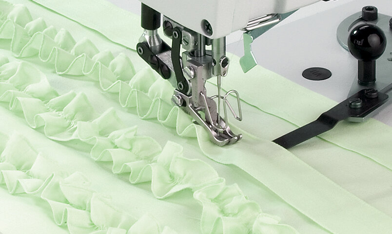 - JUKI MH-382U. Высокоскоростное 2-игольное оборудование двойного цепного стежка с плоской платформой и тандемными иглами. Ценится за высокое качество строчки и хорошее петлеобразование из-за уникального механизма петлителя и устройства для регулирования плотности и равномерности стежков.