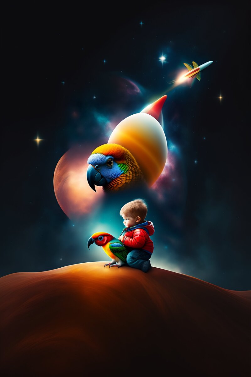 Однажды Макс познакомился со старым мудрым попугаем, который жил на дереве рядом с его домом. Попугай был очень знающим и многое повидал за свою долгую жизнь. Макс спросил попугая, можно ли ему полететь на Луну. Попугай захихикал и сказал Максу, что это действительно возможно, но для этого потребуется много смелости и решимости.