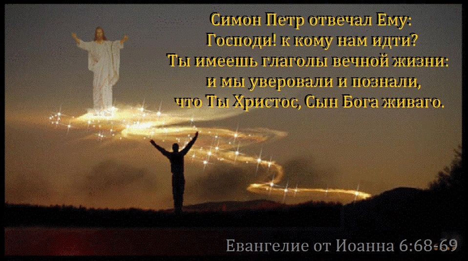 Стихи 68, 69. Хотя этот вопрос был обращён ко всем двенадцати, никто не удивился тому, что Пётр ответил за всех. Пётр, будучи импульсивным и нетерпеливым, произнёс первое, что пришло ему в голову: «Господи! К кому нам идти? Ты имеешь слова вечной жизни». Если оставившие Иисуса ученики рассуждали исключительно на физическом уровне и отказались принять духовную ценность учения Иисуса, то Пётр схватил его суть и значение. Ранее Иисус говорил, что Его слова были «духом» и «жизнью» (6:63), и Пётр принял эту истину. Ни у кого больше не было «слов вечной жизни» — только у одного Иисуса.