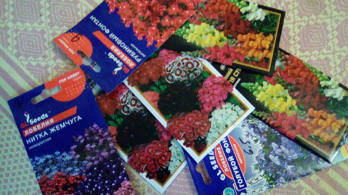 Вот все чаще думаю что магазины с семенами наверное специально ставят на пути, вот куда не пойдешь везде они! Ну мне же надо было сходить за хлебом и молоком а ноги идут прямиком в магазин Сад и Огород, странная штука эта дорога. Зашла и вот: Опять купила лобелию, обожаю ее! Взяла Нитку жемчуга, Рубиновый фонтан и Голубой фонтан. Еще купила Турецкую гвоздику. Гвоздика турецкая, или гвоздика бородатая (лат. Dianthus barbatus) – растение рода Гвоздика семейства Гвоздичные. Уже в ХVI в. она широко использовалась как в крестьянских, так и в парадных садах. Эта гвоздика зацветает в самом начале лета и яркими красками наполняет сад в период, когда отцвели луковичные, но еще не появились летники. Я взяла смесь цветов. И конечно Львиный зев, ну как же без него! Львиный зев (Antirrhinum), который еще именуют антирринум, имеет прямое отношение к роду травянистых растений, относящихся к семейству подорожниковых. Это