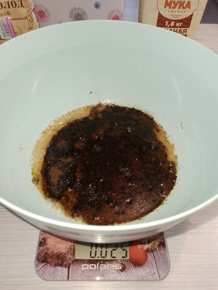 Доброго времени суток, дорогие читатели! Когда я "подружилась" с дрожжевым тестом и научилась печь пшеничный хлеб, моей радости не было предела. Но со временем появилось желание научиться печь и ржаной хлеб. Я не знала, что он готовится не только из ржаной муки. В общем, я пыталась печь по разным рецептам, но ничего не получалось. Хлеб выходил твердым тяжелым кирпичом. И вот наткнулась я на рецепт ржаного хлеба с солодом. Заказала солод на маркетплейсе и принялась творить. Получилось с первого раза. Пекла уже несколько раз и теперь могу поделиться рецептом с вами. Для приготовления нам понадобится: 1. Выливаем в емкость теплую воду (не горячую!) и всыпаем дрожжи, сахар и соль. Перемешиваем венчиком до растворения соли и сахара. Туда же по желанию добавляем специи. 2. Для улучшения цвета, вкуса и аромата хлеба добавляем 25 г ржаного ферментированного солода. 3. Добавляем 1 столовую ложку растительного масла и муку. 4. Тщательно вымешиваем тесто 5-7 минут. Должно получиться мягкое нежное