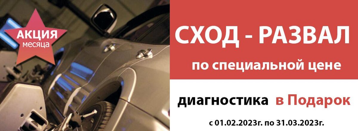 Компания Автоэксперт предлагает воспользоваться уникальным акционным предложением, срок действия которого составляет с 01.02.2023г. по 31.03.2023г. Для всех клиентов в рамках данного периода существует возможность произвести качественный сход-развал автомобиля по уникальной стоимости. Специальные цены распространяются на любые классы автомобилей. Стоимость услуги в период с 01.02.2023г. по 31.03.2023г. составляет: Данные цены являются фиксированными и распространяются на любые категории и классы автомобилей. Также в подарок для всех клиентов сети компании предоставляется бесплатная диагностика схода-развала. Данная услуга позволяет своевременно выявить имеющиеся проблемы, определить их причины и оперативно устранить. В акции могут принимать участия лица, достигшие совершеннолетнего возраста. К оказанию услуг допускаются автомобили любого класса. Условия акции не распространяются на ИП, а также юридические лица. Принять участие в акции можно в любом из сервисных центров компании. Для з