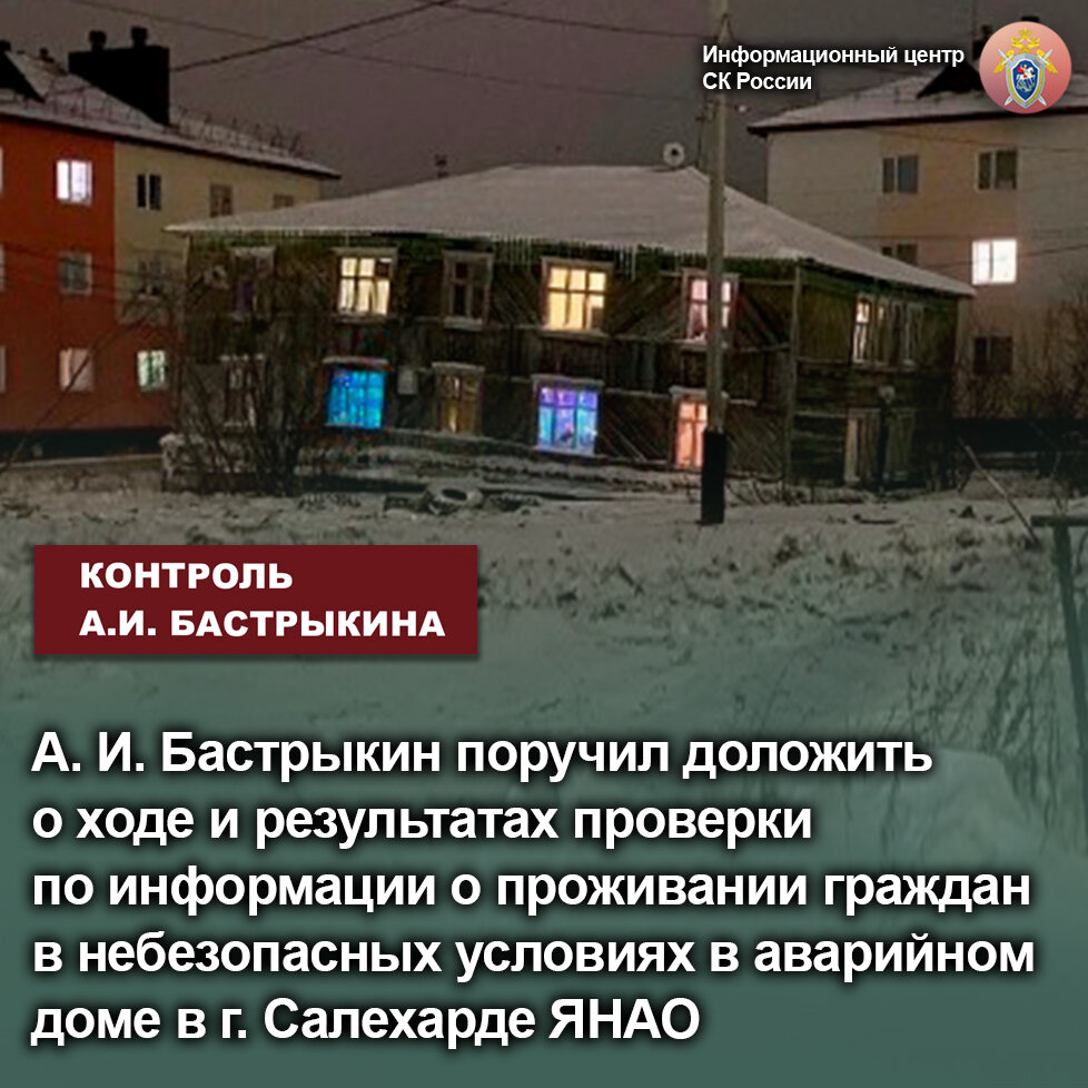 А.И. Бастрыкин поручил доложить о ходе и результатах проверки по информации о проживании граждан в небезопасных условиях в аварийном доме в г. Салехарде ЯНАО