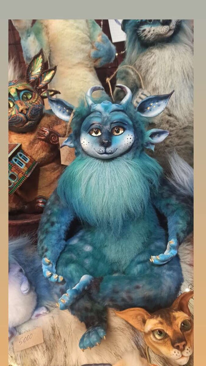 Добрый день, любители рукотворных дел, сегодня покажу очередную куклу на подвижном каркасе. Лунник- лунный зверь, ночной ушастый зверёк. Очень любит ягоды, особенно чернику). Немного о том, как делаю подобные куклы. Заранее делаю глаза- расписываю стеклянные полусферы с обратной стороны акрилом. основа головы из фольги. Леплю морду из полимерной глины или самоотвердевающей массы. Процесс лепки по внутреннему ощущению "так должно быть". рога укрепляю проволочным каркасом для прочности, уши тоже на проволоке, оставляю их подвижными. Мне кажется это интересной идеей, т к положение ушей активно изменяет эмоции персонажа. Скелет зверя делаю из трехжильного провода либо из специального пластикового каркаса. К каркасу прикручиваю голову и заранее вылепленные кисти и стопы. Обматываю скелет синтепухом и обшиваю искусственным мехом. Бывает, снимаю выкройку и сшиваю шкуру отдельно, но чаще шью прямо на кукле, так удобнее. Мех крашу из аэрографа в нужные цвета. Постоянно расчесываю, чтобы не слип