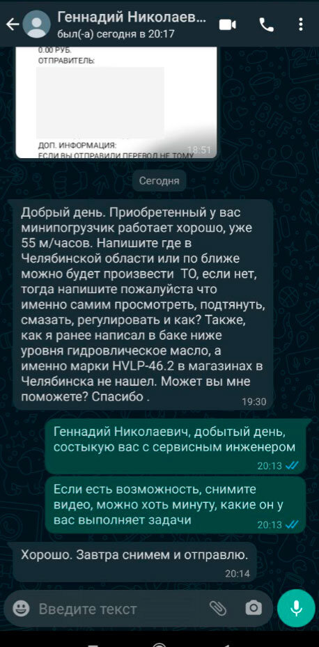 Сергей, г. Мурманск "Мини погрузчик понравился, узнал по названию в интернете. Купил сразу модель помощнее в основном для снегоуборочных работ. Из оборудования - только Ковш, но задумываюсь о расширении арсенала на будущее. В работе вполне устраивает, с управлением разобрался за час. Функционал как у трактора или того же Bobcat",-