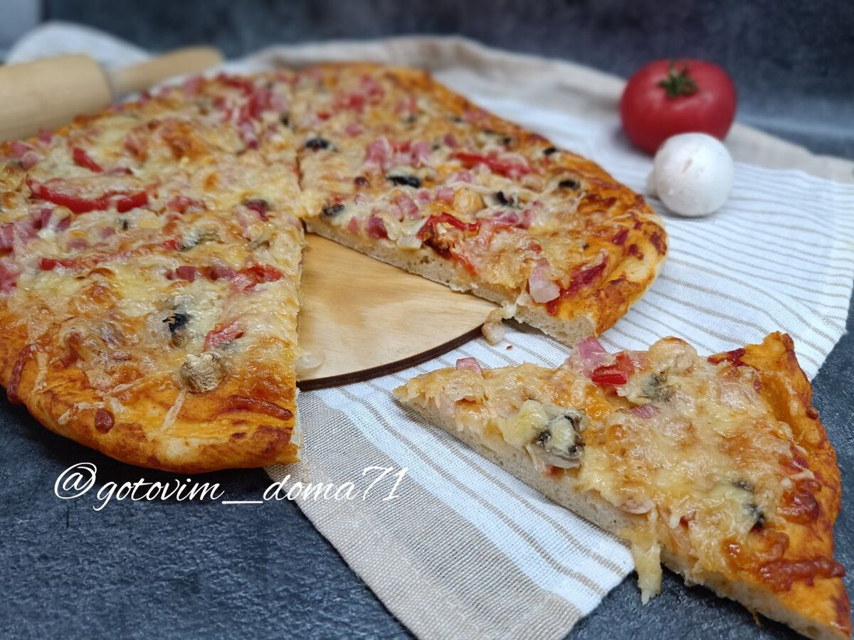 Все любят пиццу! Делюсь отличным рецептом теста. Начинка может быть любая. Тесто не любит сквозняка. (Список ингредиентов в конце рецепта).