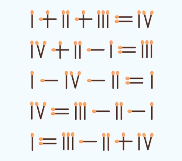 Воображение: Решение головоломок со спичками требует воображения и творческого подхода, поскольку вам нужно представить, что произойдет, если вы передвинете определенные спички.