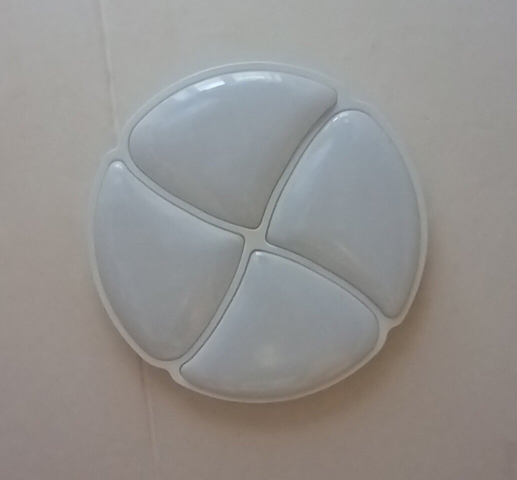 Итак, установлен светодиодный светильник с пультом дистанционного управления (ПДУ) "Солярис Siesta Light Standart 002" мощностью 75 Ватт и диаметром 500мм. Светильник имеет постоянный режим работы: Теплый / Нейтральный. Светильник имеет равномерный свет, не мерцает, поэтому идеально подходит для установки в спальню, детскую комнату, прихожую, на кухню, в зал, ванную, для гостиной и в любое другое помещение, имеющее площадь 15-20 кв.м.