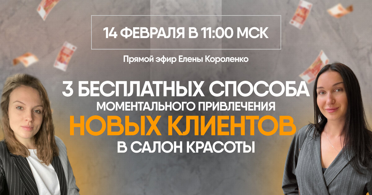 Во вторник (14 февраля) в 11:00 по мск проведу эфир на тему получения клиентов в моем ТГ-канале и в НЕЛЬЗЯграме👥 На прямом эфире мы разберём: 1️⃣ Почему вам сложно привлекать новых клиентов? 2️⃣ 3 способа, как вам привлечь новых клиентов до конца недели; 3️⃣ Как при открытии салона моя наставляемая бесплатно получила первых клиентов? Приходите на эфир, чтобы не пропустить и задать вопросы по своей ситуации лично мне! Телеграм-канал | Нельзяграм | Сайт