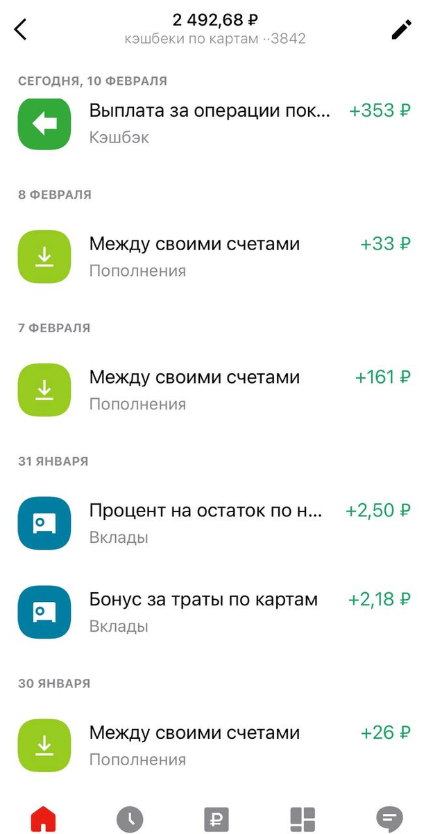 Первый и пока последний мой отчет после начала ведения счета для пассивного дохода был 20 января. Там были неплохие пополнения за короткий промежуток времени, спустя более 20 дней, пополнения не столь шикарные. Сейчас на счете всего 2492,68 рубля. Для тех, кто накнулся на статью случайно: В этом году я создала счет, на который буду складывать все кэшбеки по дебетовой карте и суммы равные скидкам по баллам карт магазинов(не путать с процентной скидкой). Также на этот счет будут лететь остальные деньги, полученные в рамках тестирований источников пассивного дохода . Кроме того, сам счет накопительный со ставкой 7,5%. В январе дополнительно на счет попало только 26 рублей. Это списанные баллы при сдаче анализов в мед центре. Про балловую систему этого медицинского центра я писала в прошлом отчете, поэтому дополнительно расписывать снова не буду. Процент по счету Так как процент начисляется на минимальную сумму на счете за месяц, сумма получилась микробышная. Открывала я его в январе с