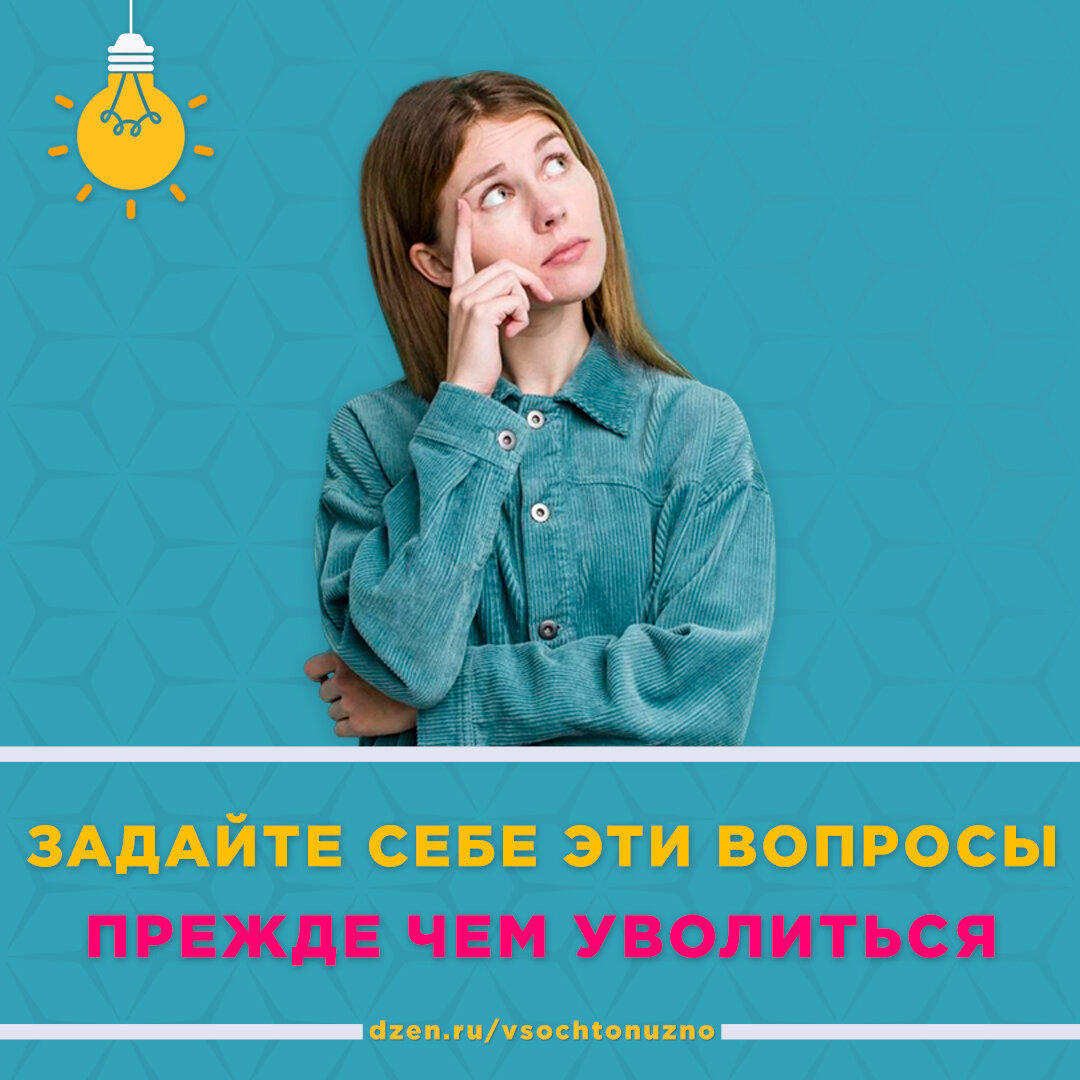 Во-первых, убедитесь, что вы не действуете импульсивно, а также что вы проанализировали все плюсы и минусы вашего решения. Увольнение требует смелости, поэтому вы должны быть уверены, что это действительно то, чего вы хотите. Если вы все еще не уверены, что это лучшее решение на данный момент, то ниже мы подготовили несколько вопросов, которые вы должны задать себе, прежде чем уволиться с работы.
