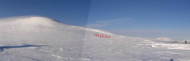 Палатка группы Дятлова стояла (как определили многие серьёзные эксперты) именно в этом месте и боком к господствующим тут ветрам. Доминирующее направление ветра - в основном сильного, штиль тут редкость и за проведённые нами здесь двое суток в сумме набрал всего несколько часов - легко увидеть по скоплению снега, наносам....