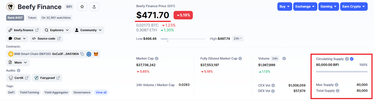 DYOR (Do Your Own Research), не финансовая рекомендация Beefy Finance - это Децентрализованная Кросс-чейн платформа по Оптимизации Доходности, которая дает возможность своим пользователям зарабатывать сложный процент по их криптоактивам. Главным продуктом, предлагаемым Beefy Finance, являются 'Хранилища', в которые вы вносите свои токены. Инвестиционная стратегия, будучи привязанной к конкретному хранилищу, автоматически будет увеличивать количество внесеных токенов, реинвестируя прибыль с доходного фермерства обратно в депозит. $BIFI токены - это доля в Beefy Finance, которая дает право на получение дохода от прибыли, формируемой протоколом. Кроме того, держатели токена имеют право голоса при принятии важных решений в платформе. На всех сетях и для всех хранилищ токен управления $BIFI выступает ключевым для платформы. Прибыль платформы формируется за счет небольшого процента, взимаемого с прибыли всех хранилищ и распределяемого между теми владельцами токена $BIFI, которые его стейкают
