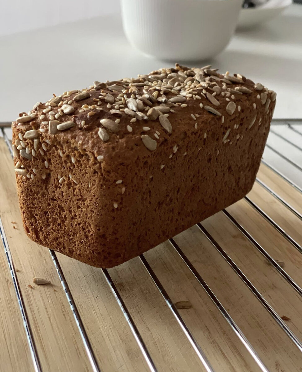 Ещё один рецепт хлеба, чтобы вы больше пекли дома, а не покупали магазинный хлеб с кучей добавок, сахара, трансжиров и дрожжей😣 ⠀ Печётся просто! Получается вкусно! ⠀ 🍞🍞🍞 ⠀ 4 столовые ложки псилиума (это растворимая клетчатка - шелуха семян подорожника, продаётся и в аптеках и в супермаркетах - отделах здорового питания и озон, да и вообще во многих интернет-магазинах). ⠀ Псилиум смешать с 500 мл воды и оставить на 5 минут набухать. ⠀ В отдельной чашке смешиваем сухие ингредиенты: ⠀ Мука пшеничная цельнозерновая - 120 гр Мука кукурузная - 120 гр Мука нутовая - 120 гр ⠀ (Вообще можно использовать разные виды муки - я пробовала и с рисовой, и с мукой зелёной гречки и овсяной - всегда получалось вкусно, просто смешайте по 120 гр любых трёх видов). ⠀ В муку добавляем 1 чайную ложку соли и 1/2 ч л соды ⠀ Все сухие ингредиенты смешать. Добавьте ещё любые семечки/семена - я люблю добавлять тыквенные, кунжут, подсолнечные или льняные. ⠀ Соедините с набухшим псилиумом и замесите плотное, но