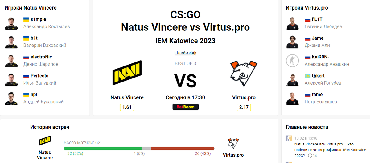 CS:GO Natus Vincere vs Virtus.proIEM Katowice 2023 Плей-офф