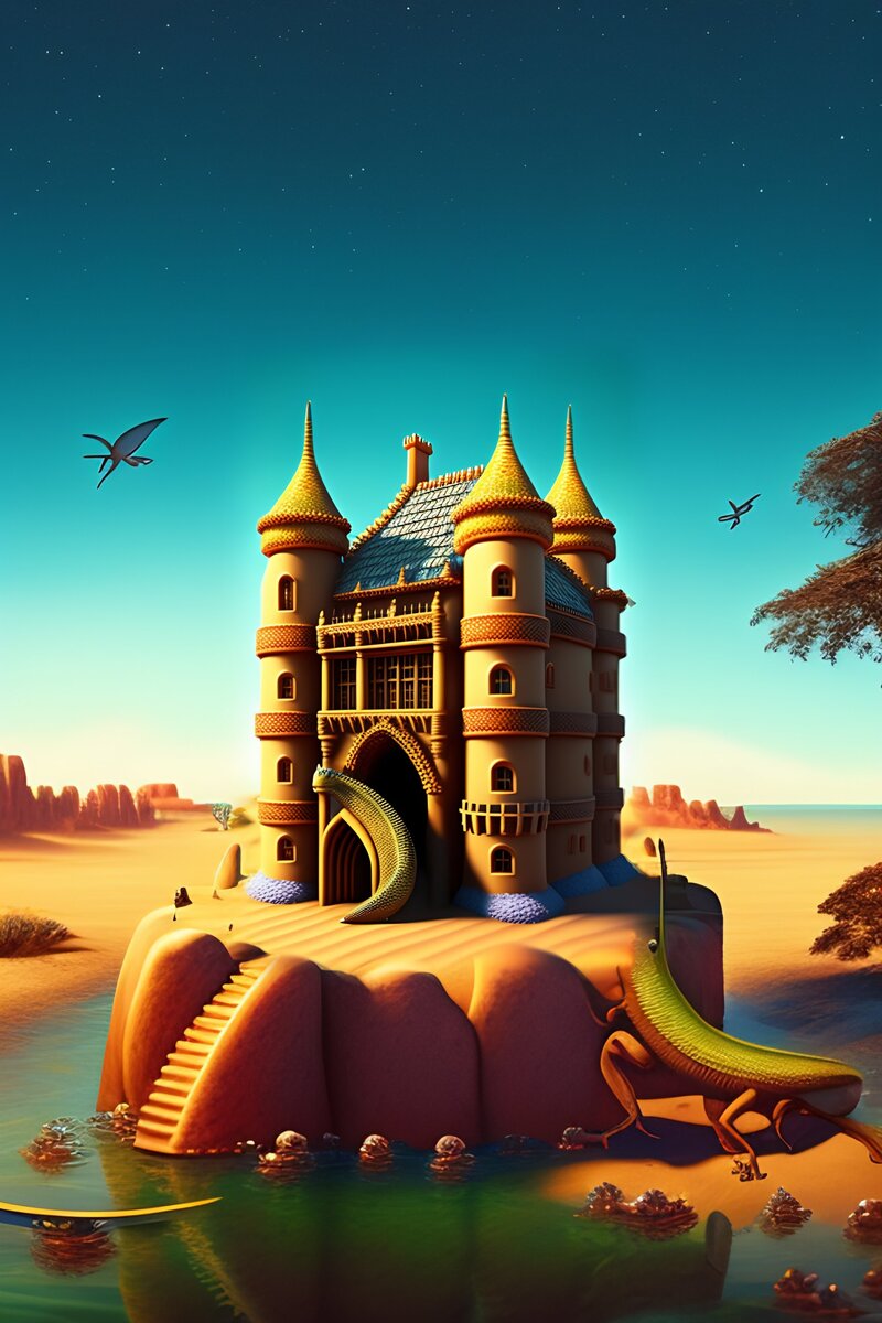 Давным-давно в огромной бесплодной пустыне жила маленькая и ничем не примечательная ящерица. Ящерица была довольна своей простой жизнью, проводя дни, греясь на теплом солнце и охотясь за насекомыми. Но однажды, бродя по дюнам, он наткнулся на величественный и великолепный замок. Он был полностью сделан из песка, и ящерица была потрясена его красотой.