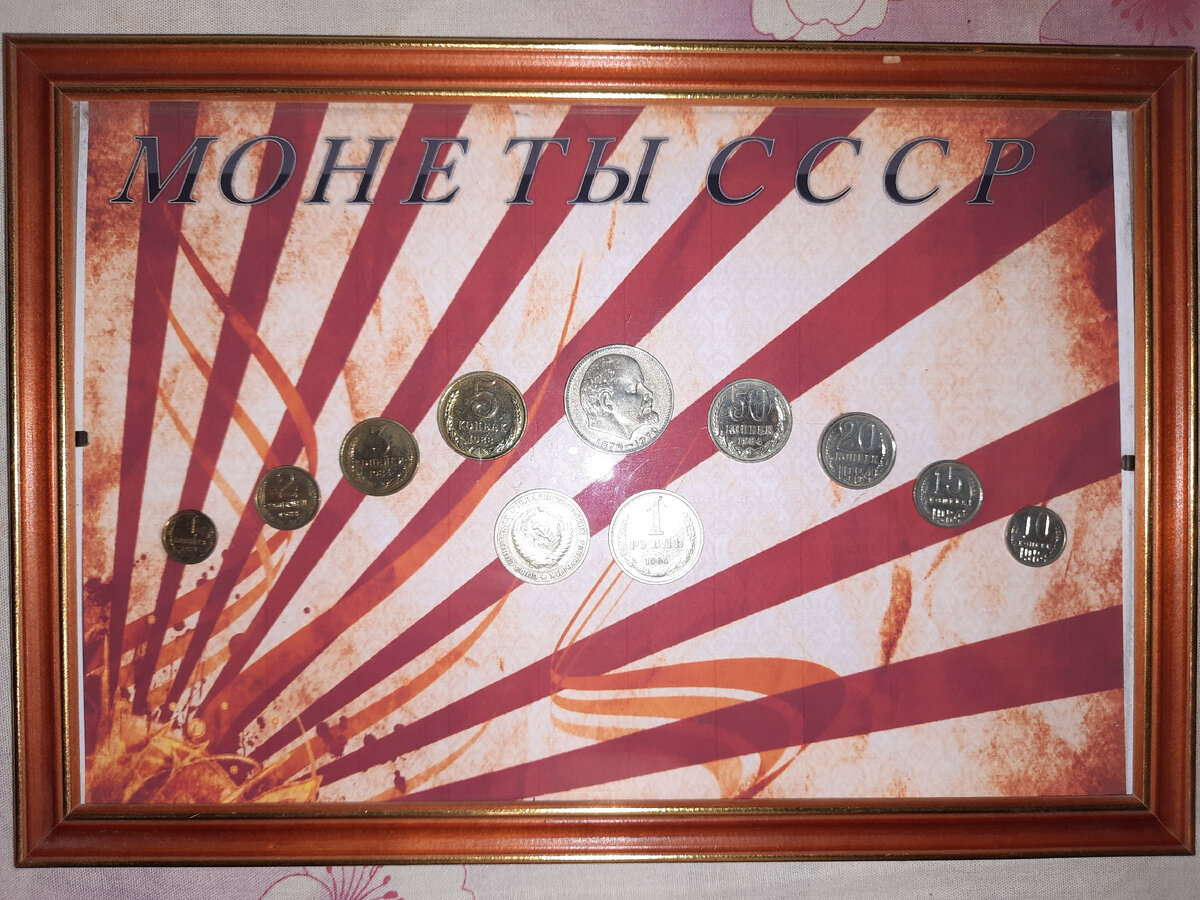 Это была моя первая и единственная картина оформленная монетами из монет СССР. Для начала хотелось найти монеты одного года выпуска, но у меня не нашлось их. Пересмотрел целую кучу мелочи, но видать не судьба была их мне найти. Так вот пришлось некоторые монеты взять других годов, думаю нечего критичного. Фото рамку взял формата А4 её легко найти они много где продаются. Купил Сам я лично покупал фото рамку в канцелярском магазине, там большой выбор был и по цвету да и по размеру. Фон нашел для картины в интернете, соответственно скачал и распечатал на цветном принтере. Монеты пришлось выбрать по лучше качеством, а также их я отполировал. Полировал я гравёром с насадкой для полировки и с пастой гоя. Полируются они на ура, стают блестящими как зеркало. Вид у ник стал лучше, чем у новых, когда их наштамповали на монетном дворе. Как всё было готово, потом перешёл к оформлению картины. Монетки расположил, как мне понравилось от малого это копейка до великого 1рубль В.И. Ленина. Его пост