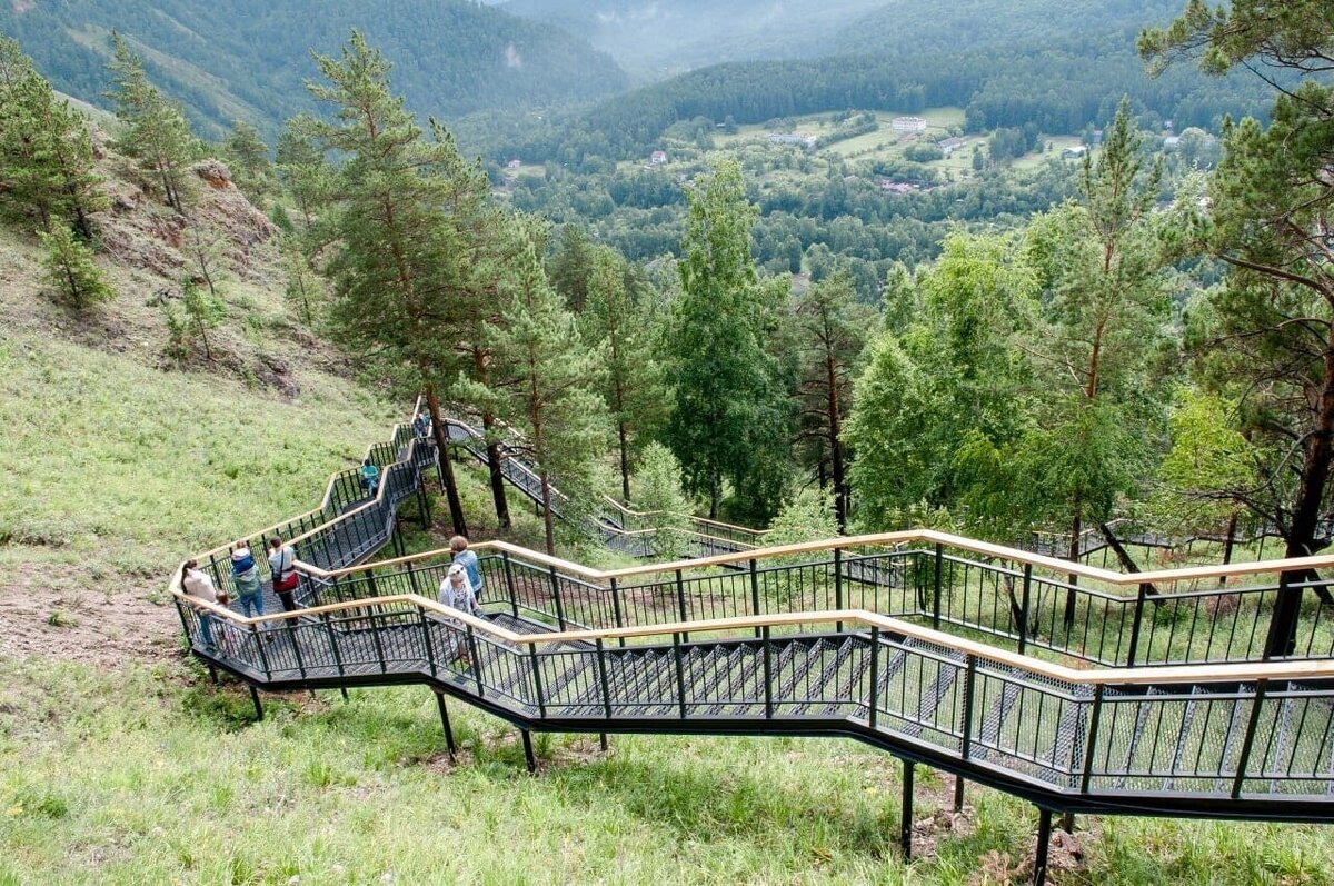 #жизнь в Сибири #самое-самое #Красноярск #городская жизнь Живу в Красноярске уже почти 40 лет из своих 60. Очень люблю свой город! Он красив, уютен, удобен для жизни, он просто родной, хотя родилась и выросла я не здесь. Сегодня хочу рассказать о тех достопримечательностях Красноярска, которые являются самыми-самыми. Все фото из доступных источников. Разделила статью на 2 части, чтобы не перегружать обилием текста и фото. Наш город находится в предгорье Саян, отовсюду открываются прекрасные виды на холмы, горы и скалы. Но человеку всегда мало и хочется любоваться на эти горы и окружающие ландшафты не только с равнины, но и с различных возвышенностей. В городе есть несколько смотровых площадок, откуда открываются невероятные виды природы и города. 1. Торгашинская лестница В декабре 2021 года в Красноярске открыта самая длинная лестница России на Торгашинский хребет. Она ведет от реки Базаиха на вершину хребта. Лестница состоит из 1683 ступеней. Общая протяженность маршрута — 1200 ме