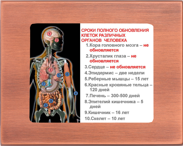 Сегодня мы точно знаем, сколько живут разные типы клеток нашего организма. «Наше тело полностью обновляется за 7-8 лет» – могли вы слышать раньше. Сейчас известно: это не так! 300 видов клеток нашего организма обновляются с очень различной скоростью. Так, например, клетки соединительной ткани поджелудочной железы, обновляются каждые сутки, а вот клетки сердца – кардиомиоциты – остаются с нами почти всю жизнь.