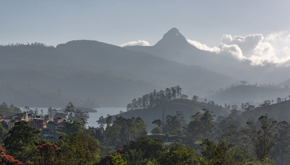 Предшествующая заметка: Многоликая Шри-Ланка на машине. Часть 6 — Девятиарочный виадук и чайные плантации Километры серпантинов прокатились по шинам нашего болида. Изначально пасмурная погода Пика Адама к вечеру прояснилась — мы все чаще искали место на обочине для очередного фото. Неспеша прокатились через Нувара-Элия, разглядывая нехарактерную для страны размеренность городского ландшафта — явно сказывалось английское колониальное прошлое. И снова извилистая дорога по склонам зеленых гор. Наконец, за очередным поворотом показалась острая пирамида Пика Адама. Пик Адама (Adam's Peak), а иначе Шри-Пада (Sri Pada) или Саманалаканда (Samanala Kanda, Гора бабочек) – вершина высотой 2243 м — восьмая по высоте, но при этом самая известная на Шри-Ланке. Как мультирелигиозная страна, Шри-Ланка породила множество мифов, мирно сосуществующих об одном святом месте: буддисты почитают это место, полагая, что здесь оставил отпечаток ноги сам Будда, мусульмане считают, что именно сюда попал Адам посл