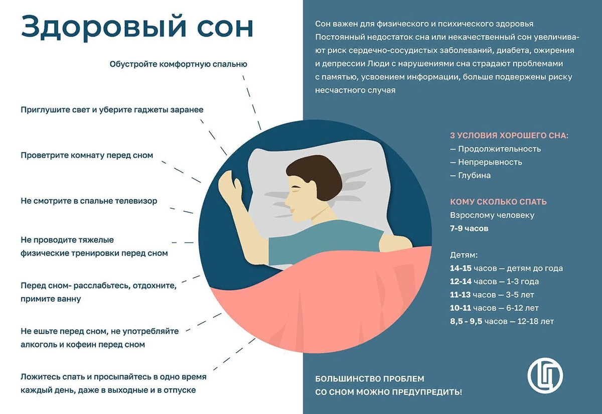 Оптимальная продолжительность сна у взрослого человека зависит от возрастных особенностей и в среднем составляет 6-8 часов.