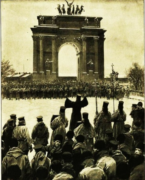 С картины неизвестного художника. Священник Георгий Гапон и рабочие у Нарвской заставы 9 января 1905 года