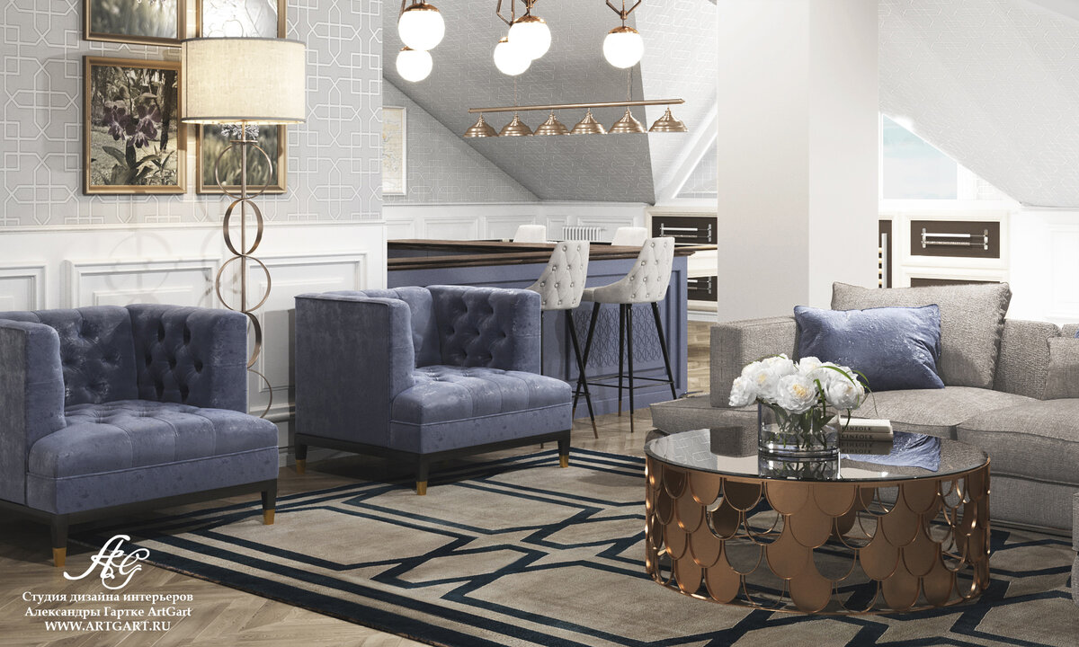 Мансарда в проекте #крона680 состоящая из гостиной с баром, игровой и бильярдной и кабинета хозяина дома. Имеется и укромное место для чтения в одном из эркеров. Здесь каждый эркер был нами задействован! Фантазии было, где разгуляться. Стены и потолок, как одно целое из-за сильного уклона, поэтому обои не только на стене, но и на потолке. Мы подшили углы на расстоянии около метра от углов и оформили их буазери, расположили на них радиаторы. За ними скрыты опорные колонны для кровли. В кабинете интересные обои с типично итальянским пейзажем в сепии. Уклон оформлен стеллажами, некоторые фасады скрывают несущие колонны, некоторые функциональны. Стол расположен прямо под мансардным окном, чтобы имелся максимальный доступ света. Рядом санузел с потолком под уклоном, стилистика его оформления фантазийная на морскую тему 🐬 Не забудьте подписаться на канал Сайт INSTAGRAM YOU TUBE ТЕЛЕГРАМ ЗАКАЗАТЬ ДИЗАЙН И РЕМОНТ Заказать дизайн и ремонт: +7 (495) 128-13-51 ; +7 (969) 034-60-46