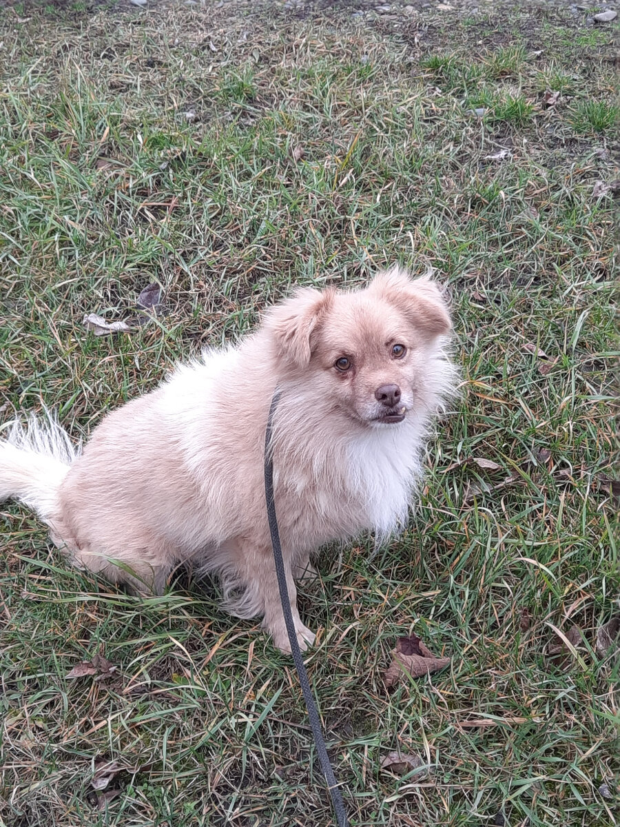 Даня, кобель, возраст около 6-7 лет, вес 8 кг, очень пушистый, у него роскошная кремовая шубка и шоколадный нос. Данечка мега ласковый, очень дружелюбный, очень игривый, тянется к человеку. У него торчит зубик, скорее всего когда-то ударили ногой в челюсть. У стоматолога мы были, делать ничего не нужно, зубик держится крепко. Даня обработан, кастрирован и привит. Поводок отлично, терпит выгул. Знает кошек и других собак. Сейчас находится в Краснодаре, доставку организуем.