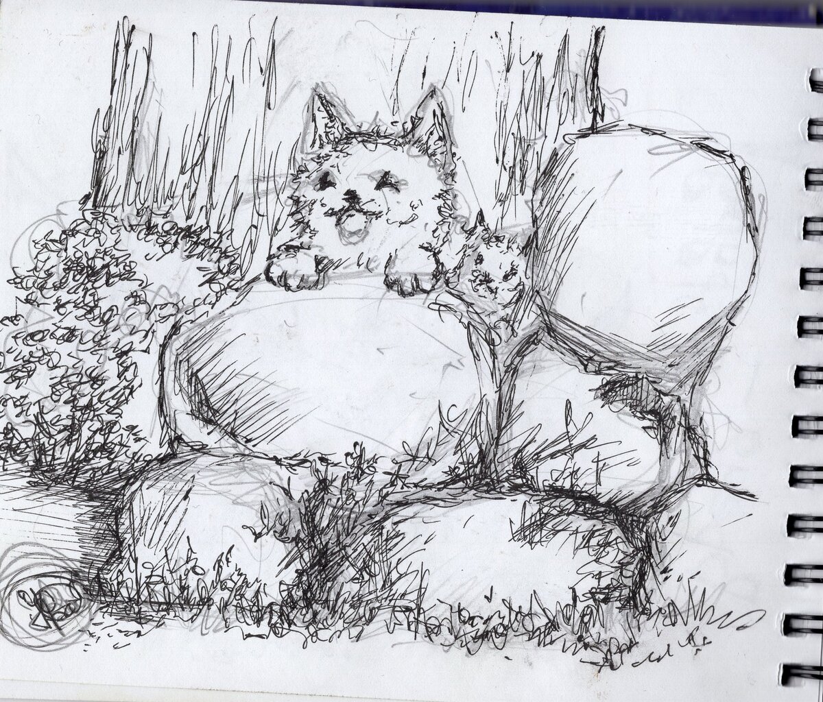 Это когда времени мало на что хватает, под рукой лишь ручка, да цветные карандаши. Вот и выходит что-то быстро.. или не очень быстро. Есть такие камни, которые очень сильно покрыты разными мелкими растениями, которые вообще-то растут между камней, но мох и на камнях появляется. И вот эти разные структуры очень хотелось передать. Небо + вода. В жизни все это может прямо таки заворожить. Небо отражающееся в воде. И сама вода, которая сверкает под ярким небом.. Кажется надо браться за кисти и краски, а карандаши всего не передадут. Хотя в умелых руках цветные карандаши создают настоящие фейрверки цветовых переливов. Спасибо всем, кто дочитал/досмотрел. Спасибо отдельное всем, кто верит и поддерживает меня.