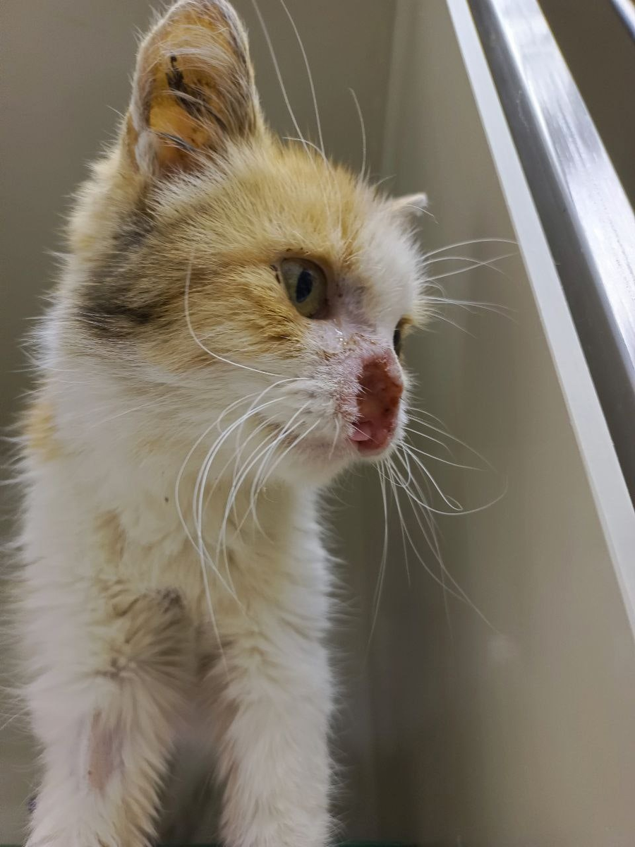 Как страшно было даже смотреть на эту малышку, казалось ты сам дышишь с трудом, кто мог сотворить такое? Предположений было много, надежды на спасения были призрачные, в этом хрупком теле еле держалась жизнь. Первые дни девушка которая нашла Мусю, возила ее с собой на работу, врачи терялись в догадках, экстренно приняли решение везти в Самарскую ветклинику к хирургу. Обследования, и диагноз который был поставлен под знаком "?" как гром и как приговор, онкология, в агрессивной форме.... Она буквально съедала ткани, истощение и возраст Муси не давали успешного лечения, чтобы хотя бы приблизится к какому-то лечению по предполагаемому диагнозу. Муся начала кушать и немного набирать в весе, никакого лечения на данной стадии уже не возможно проводить, слишком поздно малышка Муся нашла людей готовых спасти ее. Но малышка убежала от нас по радуге... Как много таких малышек, которых хочется вырвать из рук безнадежного исхода. Мусенька, ты узнала. что такое забота и любовь уже на закате своей