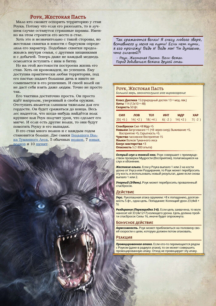 Прошёл месяц после публикации Волков Туманного Леса версии 0.9 и теперь я выкатываю на них патч. С учетом фидбека, свежей вычитки, новых мыслей и прочего. Концептуально волки не поменялись. Где-то подрихтовал цифры, где-то улучшил формулировку способностей. Полный новую версию вы можете найти на бусти (бесплатно) по ссылке. Патчноут: Вычитка текста. Ошибок было исправлено: 15. Внимательность везде заменено на Восприятие. Щенок Туманного Леса: - Радиус Надежды изменён с 5 до 10. Раум, Солнечный Зайчик: - Исправлена формулировка компонентов заклинаний. - Очаровашка работает только на видимое существо. Молодой Волк Туманного Леса. - Стайная тактика исправлена так, чтобы использовалась вне хода волка. Для улучшения нарратива. - При попадании Укусом можно вместо урона сделать захват. Брод, Храброе Сердце. - Исправлена формулировка компонентов заклинаний. - Добавлены скобки и средний урон в Храброй каре. - Стайная защита используется до объявления результатов броска. - При попадании Укусом м