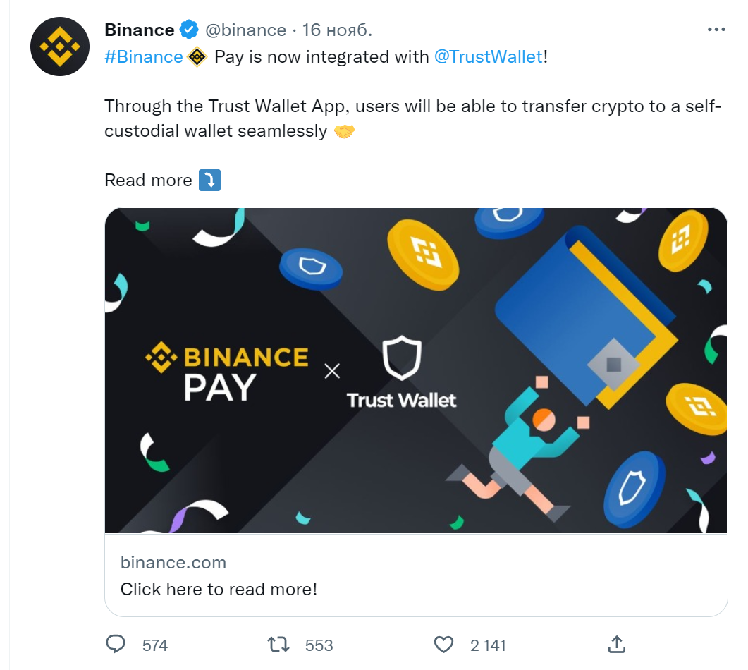 А в нынешних реалиях, когда на биржах происходят события по типу новостей об FTX, люди перестают доверять биржам и переходят на DEX кошельки, по типу Trust Wallet.Сам Binance прямо гонит свою аудиторию в TrustWallet, понимая неизбежность перехода на DeFi решения.