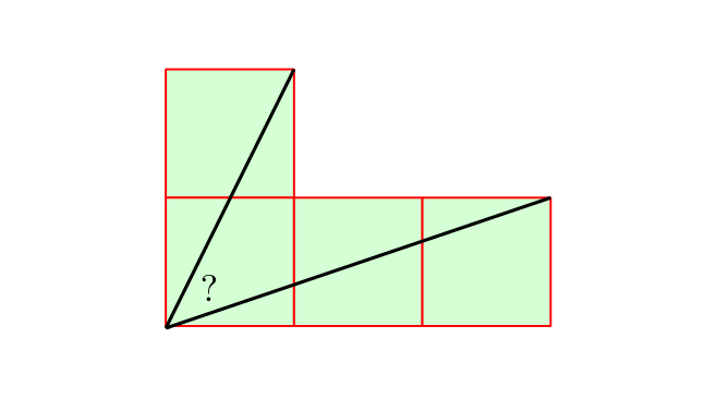 Достраиваем до треугольника и вычиляем длины сторон с помощью теоремы Пифагора.