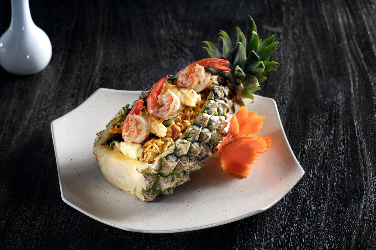 Жареные креветки в ананасе выглядят очень оригинально, а получаются вкусными. Это блюдо в азиатском стиле прекрасно впишется в праздничное меню, когда хочется побаловать себя чем-то необычным. Креветки у нас должны быть в кисло-сладком соусе. Используем свежие морепродукты. Обязательно очищаем их от панцирей и кишечной вены. При этом хвостик можно оставить. За него можно будет доставать креветки из блюда. Ананас используем исключительно свежий. Во-первых, в нем можно будет подать блюдо. А во-вторых, свежий тропический фрукт богат ценными витаминами, минералами и другими полезными веществами, которые благотворно влияют на организм. Ананасы следует включать в рацион во время снижения веса. В них содержатся вещества, расщепляющие жир. Ананасы будут обжариваться вместе с креветками. После термической обработки они будут более нежными и сладкими. Особенности приготовления жареных креветок в ананасе Креветки будем обжаривать не только с ананасом, но и с имбирем, болгарским перцем, чесноком,