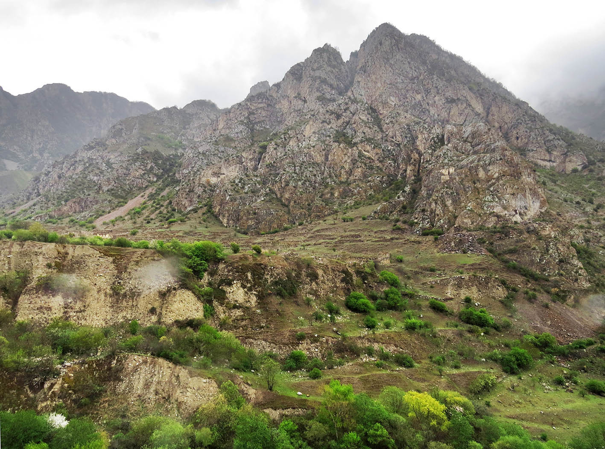 Приглядитесь - видите крепость справа, руины здания слева и нечто похожее на земледельческие террасы у подножья горы?