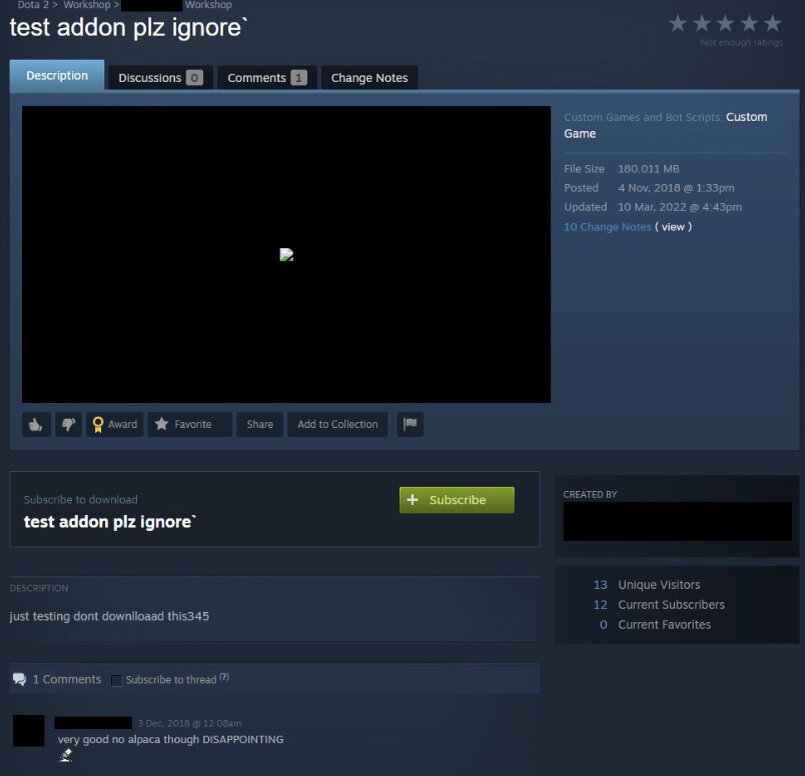 Специалисты Avast предупредили, что им удалось обнаружить четыре вредоносных игровых мода для Dota 2, которые использовались злоумышленниками для внедрения бэкдоров в системы игроков. Исследователи рассказывают, что авторы вредоносных модов не стали распространять их через тематические форумы или иными путями, а сразу опубликовал их в Steam, стремясь привлечь внимание игроков. Моды назывались Overdog no annoying heroes (id 2776998052), Custom Hero Brawl (id 2780728794), и Overthrow RTZ Edition X10 XP (id 2780559339). Также был и еще один мод — test addon plz ignore (id 1556548695), однако, судя по отсутствию реальной полезной нагрузки, злоумышленники только тестировали с его помощью свои атаки. «Прежде мод смогут использовать обычные игроки, он должен быть опубликован в магазине Steam. Процесс публикации включает в себя проверку, проводимую компанией Valve. Хотя в теории это помогает отсеять некоторые вредоносные моды, ни один процесс проверки не идеален, и как минимум четырем вредонос