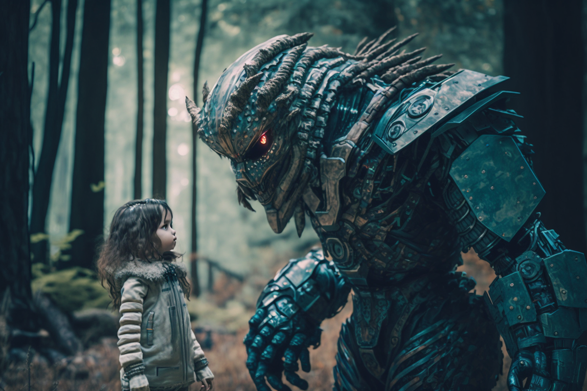 Расстегнул пояс с генератором поля и одел его поперек ее смешного туловища, из которого крестиком торчали отростки четырех конечностей. Я не принял во внимание, что вместе с тем моя маскировка испарилась и сейчас детеныш видит мой настоящий облик. Однако, я не видел в ее глазах даже тени страха. Она придвинулась поближе и погладила меня лапкой. Внутри у меня что-то защипало.