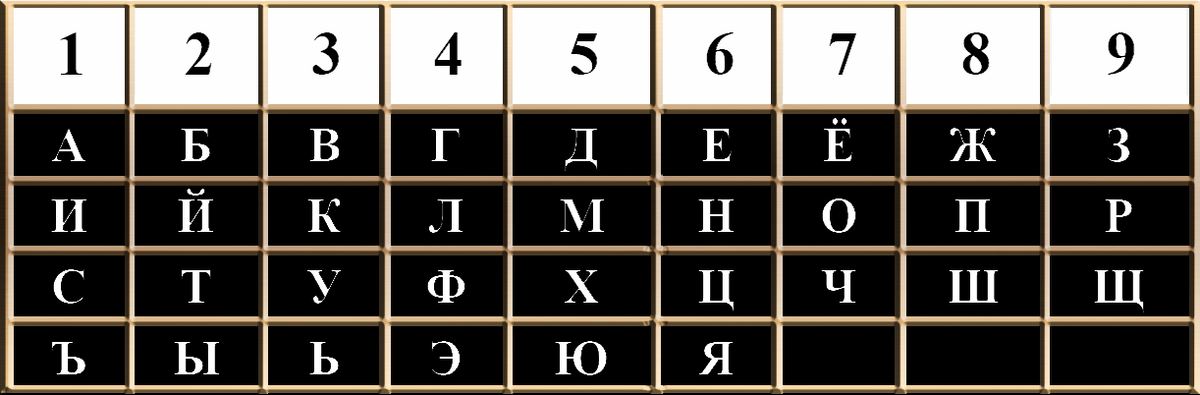 Теперь я покажу вам как перевести буквы в цифры для дальнейших расчётов. Вот таблица. Согласно буквам выписываете цифры.