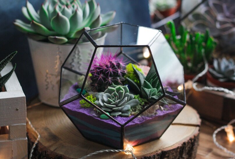 Это настоящие микроэкосистемы, имитирующие кусочек леса, пустыни, гор, джунглей, сада. Они могут состоять из более трех растений, различных природных элементов и искусственного декора.