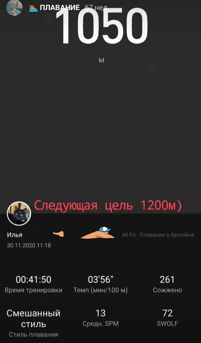Проплыл 1050м за 45минут. А сколько вы плавайте за это время?