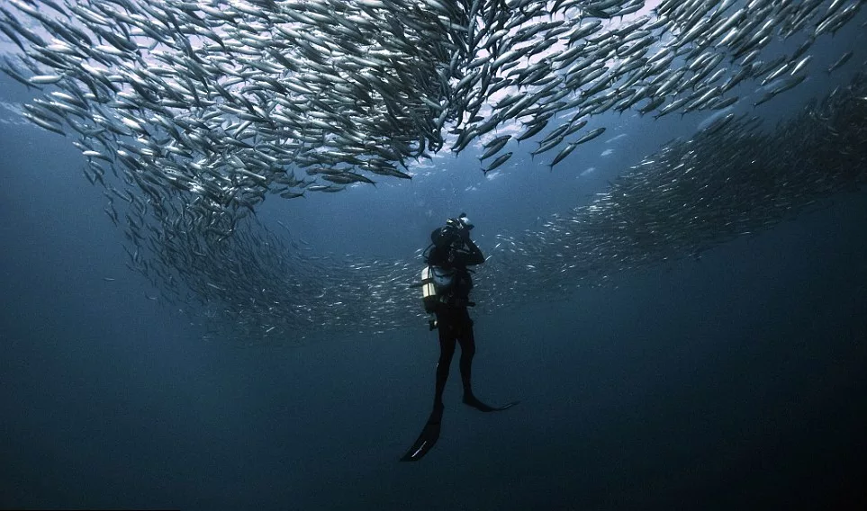 Он снимал на месте видео и фотографировал ход сардин. Это такая картина, когда сардины массово собираются вместе, а хищники приплывают, чтобы ими полакомиться. Как вы можете себе представить, наблюдение за подобным зрелищем может быть весьма впечатляющим. Трудно не увлечься ситуацией и не потерять бдительность, что, возможно, и произошло с Шимпфом.