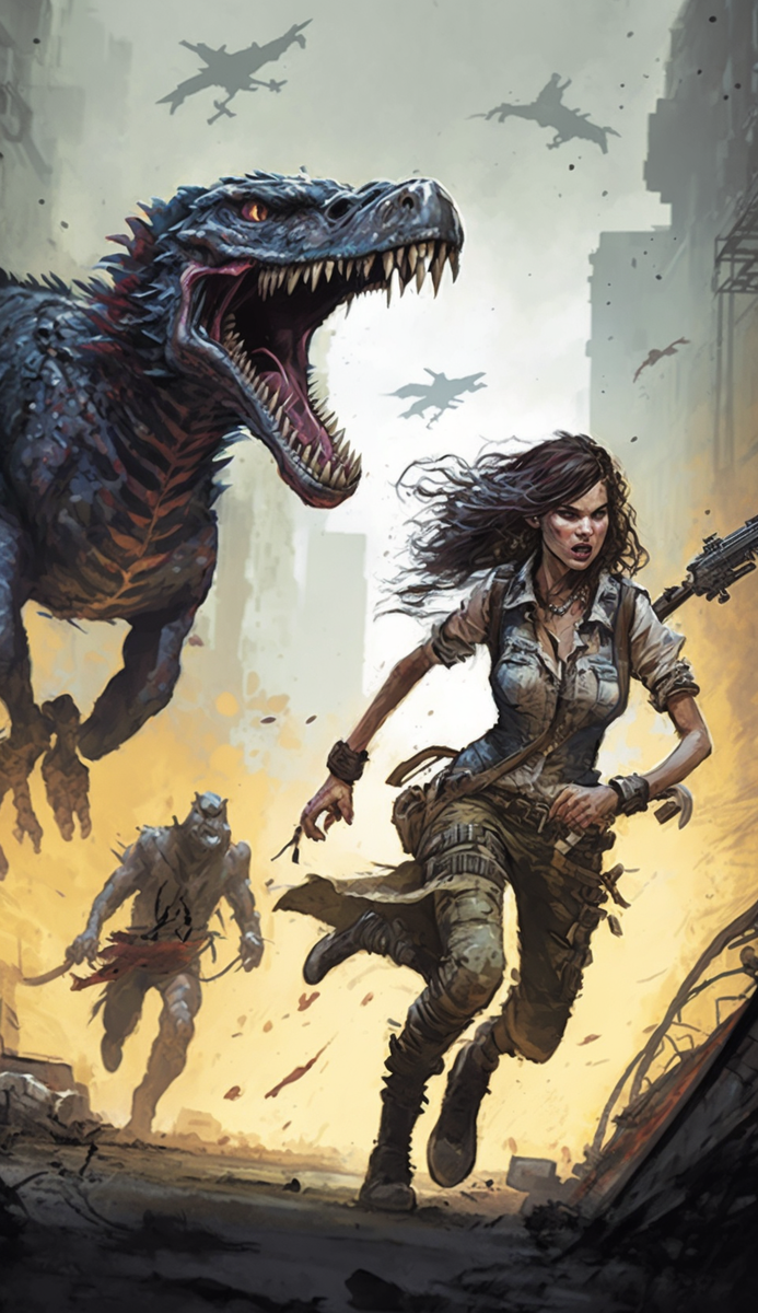 Динозавры стали темой ежедневного челленджа нейросети Midjourney. Я приготовилась просматривать ленту канала с огромным количеством жутких огромных монстров, злых и свирепых. Но ошиблась! Такими страшилками меня попугали совсем не долго, и очень скоро лента наполнилась милыми динозавриками. Немного злых динозавров Мужчина и женщина, убегающие от стаи динозавров в постапокалиптическом мире. Стиль: Рафаэль Мартинес. Постапокалиптические иллюстрации, городской упадок, высокодетализированные текстуры, мужчина и женщина в снаряжении для выживания, опасность со всех сторон. Мировой динозавр, скоростная погоня, напряженный экшен, рушащиеся здания, последние двое выживших борются за то, чтобы остаться в живых. Атака на динозавра, как Атака на титана. Скаутский полк, Эрен Йегер, Микаса Аккерман, идеальное тело, идеальное лицо, ультрареалистичная, детализированная иллюстрация, штриховка, чистый художественный стиль, острые края, насыщенный, 64k, стиль манги, стиль Макото Синкай, ключевой визуал