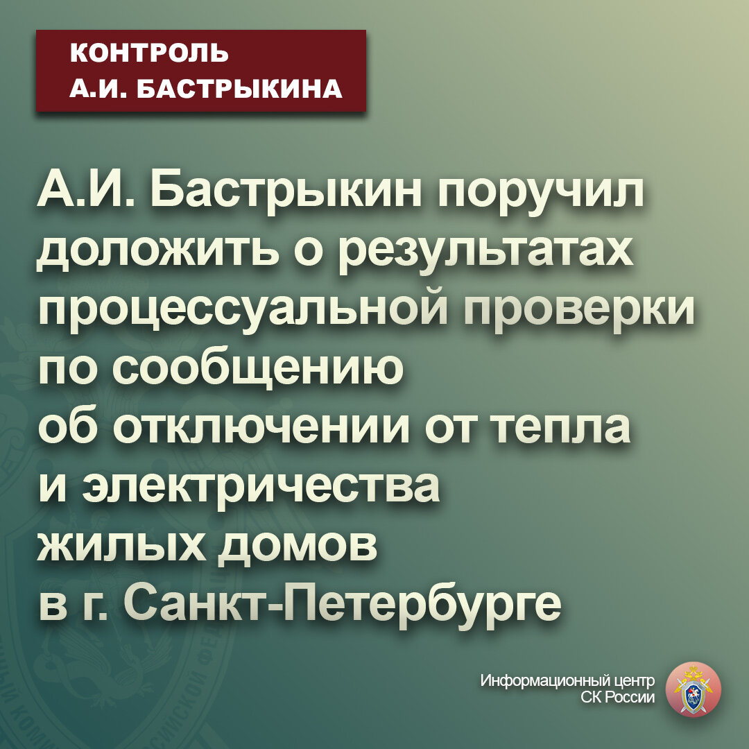А.И. Бастрыкин поручил доложить о результатах процессуальной проверки по сообщению об отключении от тепла и электричества жилых домов в г. Санкт-Петербурге