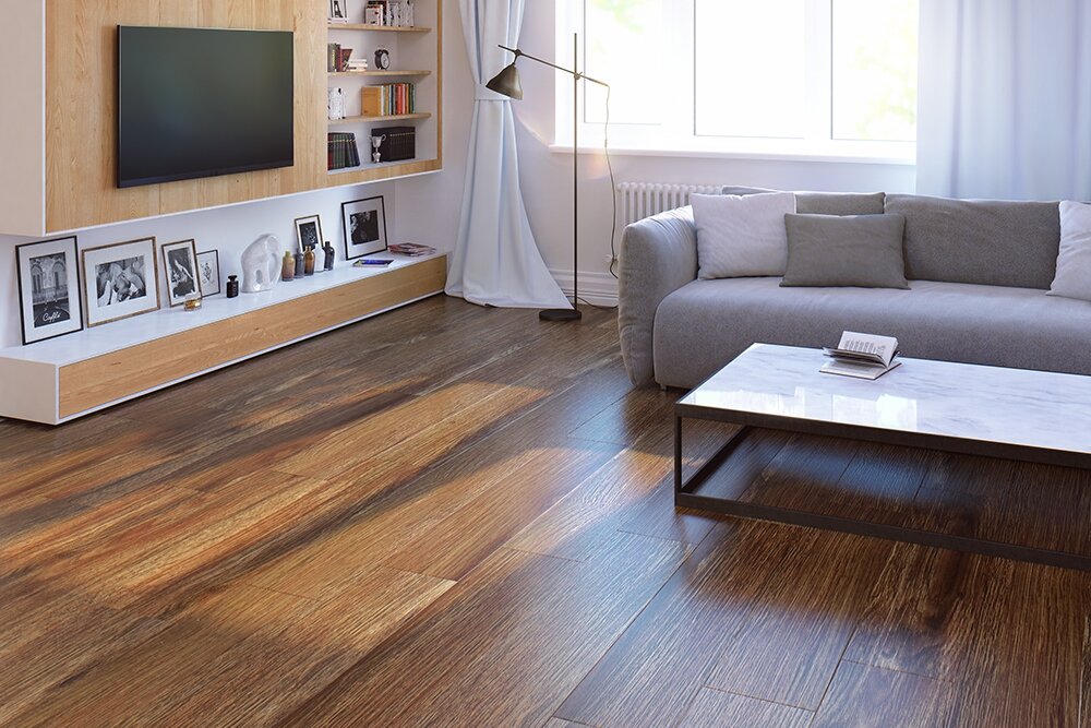 Гибкий ламинат является одним из самых современных напольных материалов. По своему виду он почти не разнится с обычным и отличается пластичностью, износоустойчивостью, а также легкостью монтажа. Особенности материала Гибкий ламинат продается в виде эластичных планок, которые включают два слоя: верхний, защитный, состоящий из полиуретана и основу. Первый обеспечивает износостойкость и сохранение привлекательного вида ламината, второй гарантирует износоустойчивость. Декоративный верхний слой может иметь самый разный вид и удачно имитировать дерево, плитку или натуральный камень. Внизу основы располагается клеевая лента, которая дает возможность обойтись без замков и использования обычного клея. Гибкий ламинат обладает рядом свойств: • Водостойкость. Виниловое покрытие пригодно для ванных, бань или влажных помещений. Вода, пролитая на него и неубираемая на протяжении долгого времени, не нанесет гибкому ламинату никакого вреда. • Высокая износостойкость. Материал принадлежит к 4