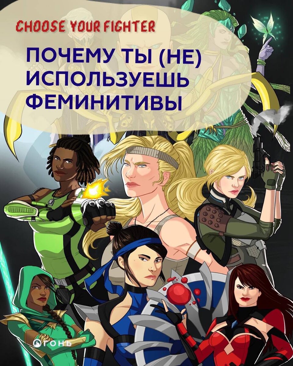 Портал Superjob спросил 1600 представителей экономически активного населения из всех округов страны насчет использования в речи феминитивов. 6 из 10 россиян негативно относятся к новым феминитивам (например, «режиссерка», «авторка», «психологиня» и другим). В устной и письменной речи новые феминитивы используют 22% россиян (каждый пятый), но большинство — в шутку или с сарказмом. При этом, по утверждению портала, «больше всего сердят феминитивы» именно женщин — среди отрицательно относящихся к «авторкам» и «психологиням» их 67% (мужчин — 60%). Лично мы обожаем феминитивы, особенно «краснодарок». И даже сделали карточки в стиле игры Mortal Combat на эту тему, где объясняем, кто и зачем все-таки использует феминитивы, а также почему же они многих раздражают.