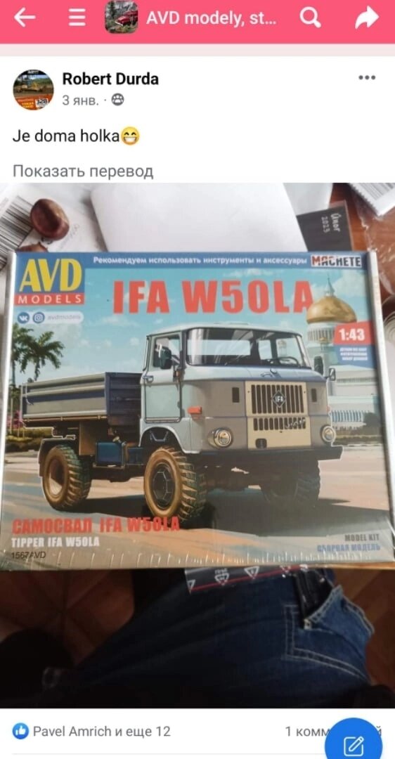 Наконец-то костромичи решили начать зарабатывать не только рубли, но и евро, кроны и т. д. Фабричные модели от SSM в виде чешских грузовичков давно покоряют Евросоюз. А тут они решили завоевывать мир с наборами от AVD. И это правильно и круто! Причем, Кострома начала делать "специальные" модели для Запада. Грузовики IFA и Skoda не так известны обывателю у нас, на Родине. Я тут буквально вчера закончила собирать первую доступную в России IFA, в внедорожном, армейском варианте. И знаете, эта модель заметно отличается от зилков и газонов для внутреннего потребителя. К примеру, уже из коробки, в наборе есть передний поворотный мост. И декали, субъективно, чуть лучше (ну может мне так показалось). Надеюсь, что контроль качества комплектации наборов для Европы будет на более высоком уровне, чем для нас. И еще момент, многие мои зрители из-за рубежа меня спрашивали где им можно купить такие наборы, поскольку Модельная Лавка работает только на территории Союзного государства, я их отсылала
