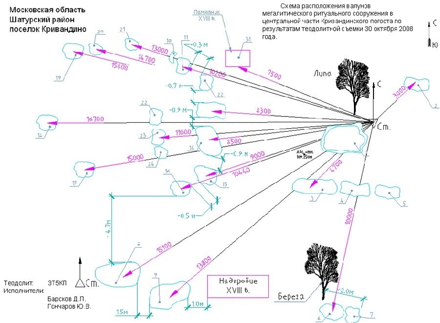Возможно, в этих местах когда-то жили племена «людей озёр» или «людей воды». По сути человек всегда селился у водоемов, будь то реки или озера. Ведь почти любой водоем это кроме источника воды еще и источник рыбы, да и место где проще добыть дичь. А в лесах, водоем, к примеру, река, еще и транспортная магистраль зимой и летом. В этих местах, о которых идет здесь речь, люди жили с древних времен. Об этом свидетельствуют сохранившиеся до наших дней языческие святилища древних славян в Кривандино и в урочище Роговская стража. Кривандино это село в Шатурском муниципальном районе Московской области. Святилище в Кривандино состоит из 83 валунов расположенных определенным образом. Этот культурно-исторический комплекс является объектом культурного наследия. Время образования святилища III век – начало II века до н. э. Получается, что ему около 4 тысяч лет. Изображения план-схем расположения валунов взяты с сайта http://lubovbezusl.ru/publ/istorija/gus/c/60-1-0-1549 Относительно не далеко от се