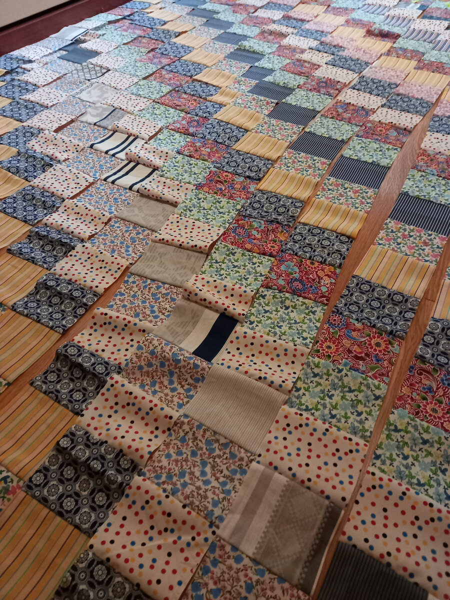 Раскладка лоскутного одеяла перед пошивом.