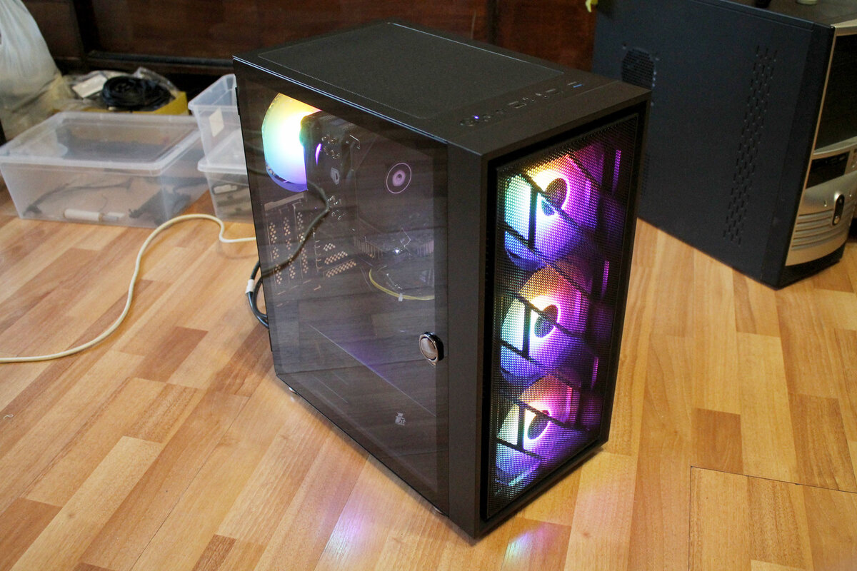 Итак, мы имеем очередного во всех смыслах слова яркого представителя семейства корпусов со стеклянной боковой стенкой, RGB-подсветкой и прямоточным охлаждением компонентов за счёт большого количества крупных вентиляторов во всю переднюю панель.