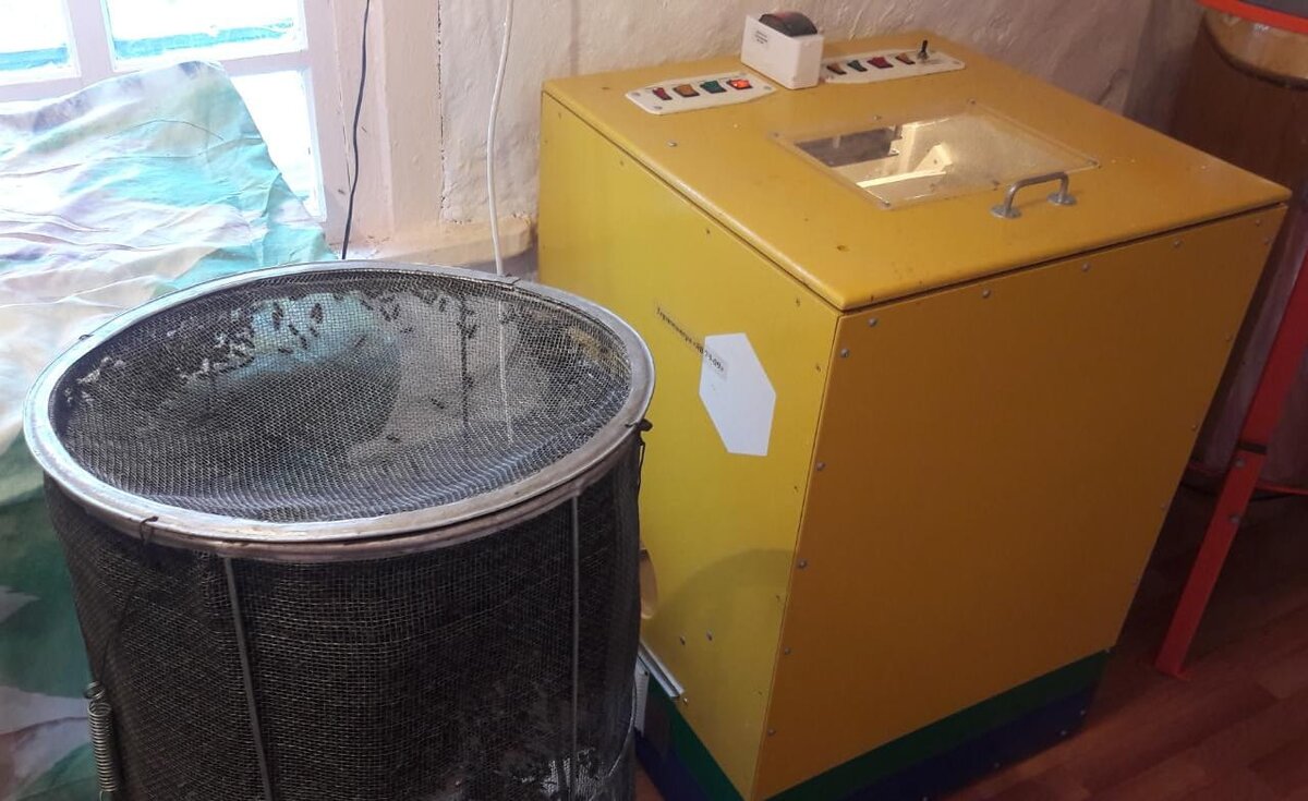 В чём принцип действия термообработки? При нагревании клещ теряет влагу, пчёлы тоже её теряют. Но объём клеща сильно меньше, чем объём пчелы, он быстрее высыхает и падает сквозь сетку кассеты на металлический поддон, где дожаривается.